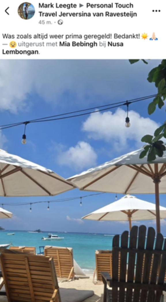 Kennis: Met jarenlange ervaring in de reisindustrie heb ik uitgebreide kennis van bestemmingen over de hele wereld. Of je nu op zoek bent naar een exotische bestemming, een avontuurlijke reis of pure ontspanning, ik heb de expertise om jou te begeleiden.